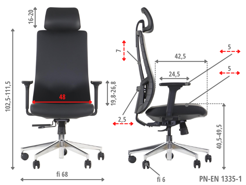 | Podłokietniki | Regulowane |