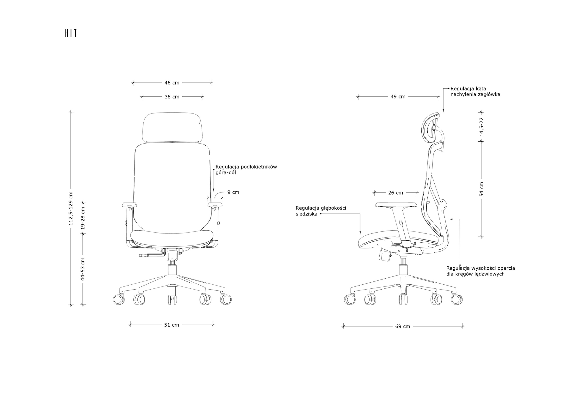 - Regulacja podłokietników (góra-dół)