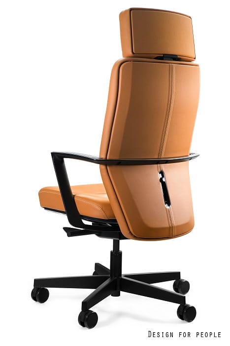 * Skóra naturalna w miejscu styczności użytkownika z fotelem, tył oparcia, spód i boki siedziska tapicerowane eko-skórą PU