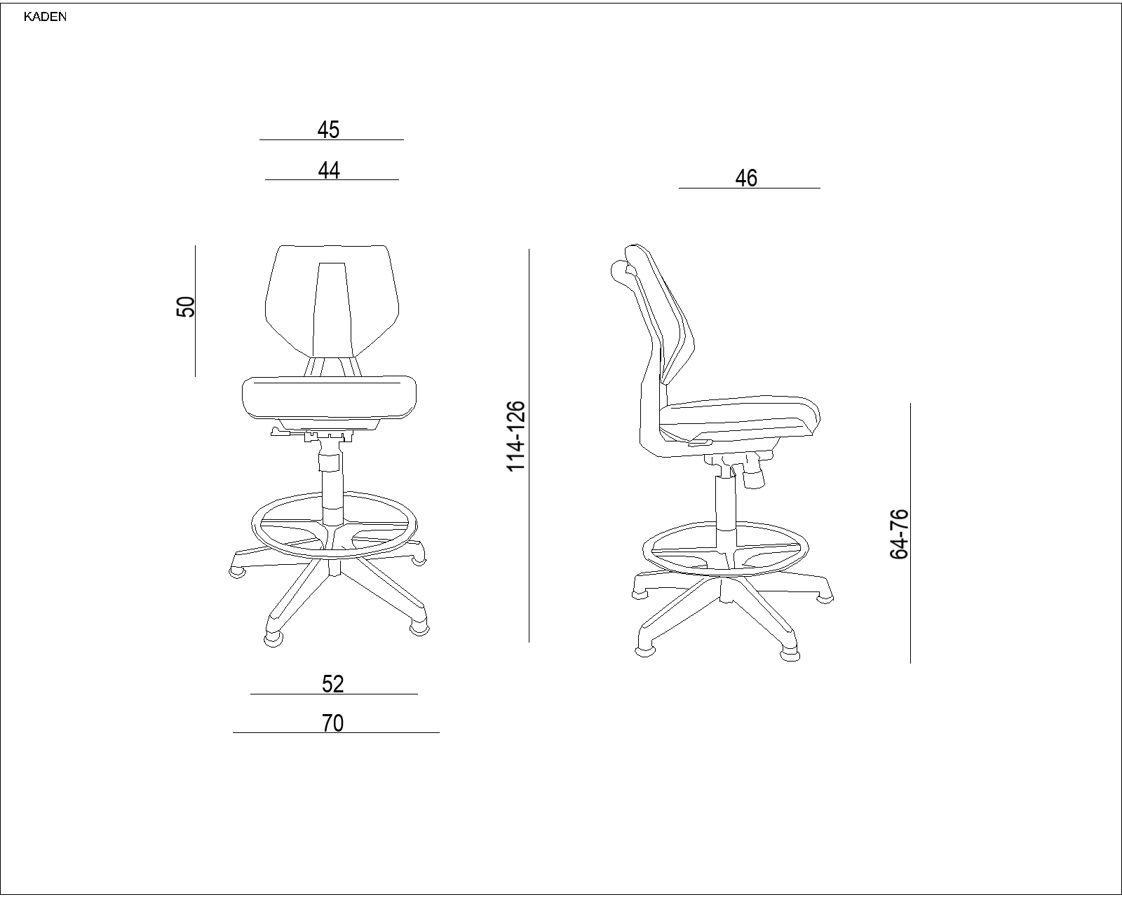 Krzesło specjalistyczne Kaden zapewnia pełną regulację wysokości siedziska. Przez producenta wyposażone zostało w komfortowe oparcie wykonane z trwałego tworzywa pokrytego powłoką z polipropylenu w szarym lub zielonym kolorze. Samo krzesło wykonane jest z tworzywa w białym kolorze, a siedzisko pokrywa eko skóra odporna na przetarcia i bardzo łatwa w czyszczeniu. Ciekawym rozwiązaniem jest wyposażenie mocowania oparcia w solidny uchwyt do przestawiania fotela. Uchwyt może także służyć jako wieszak. Dodatkowo krzesło medyczne posiada mechanizm balansujący 3D TILT. Podstawa jezdna krzesła medycznego Kaden wykonana jest z mocnego tworzywa (nylon) i wyposażona w stopki. Regulację wysokości zapewnia metalowy, chromowany podnóżek. Krzesło medyczne znosi wysokie obciążenie do 130 kg.