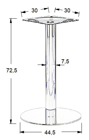 - noga o średnicy 75 mm wykonana ze stali nierdzewnej polerowanej, grubość ścianki 1,2 mm