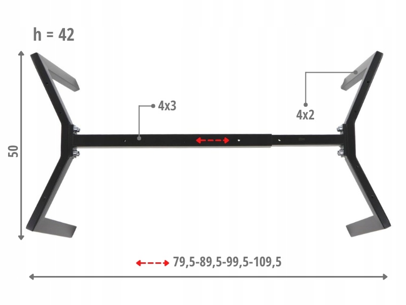 - grubości ścianek: nogi - 1,2 mm, belki - 1,2 mm