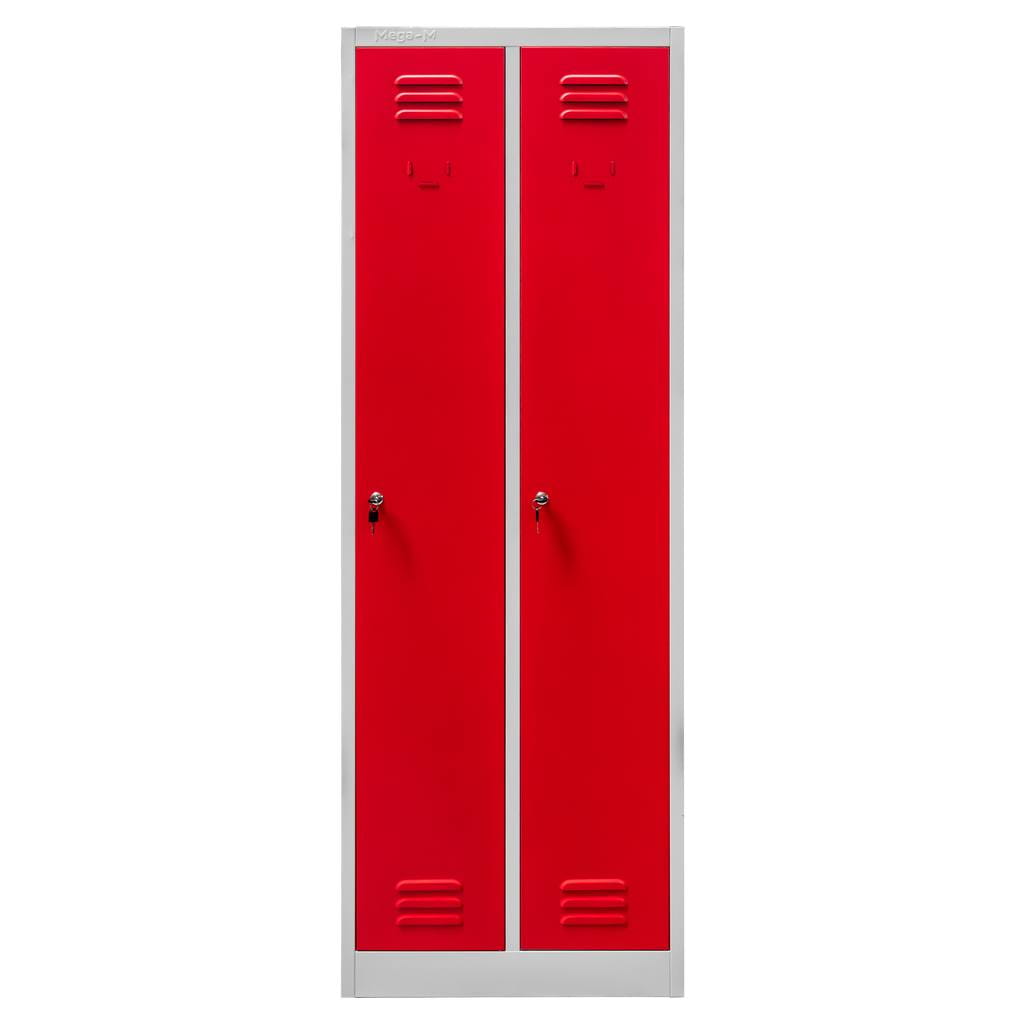 Szafka ubraniowa BHP Mega-M J-60 2 drzwiowa szara/ czerwony front S-60 cm G-50 cm H-180 cm skręcana (wysyłka paletowa) N